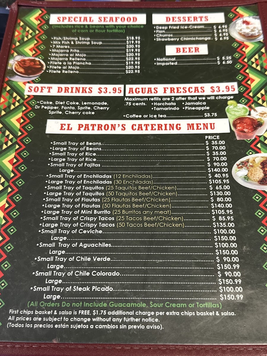 The food here fits seamlessly into the friendly and familiar setting that defines El Patron—a place where the focus is on straightforward, well-prepared Mexican cuisine enjoyed in good company.